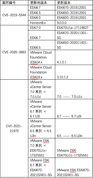 除此之外,2021年2月24日,VMware 官方发布安全公告,披露了一个严重漏洞、一个高位漏洞、一个中危漏洞。据安全人士分析称,勒索病毒在更新中添加了对其的利用代码。这三个漏洞包括: