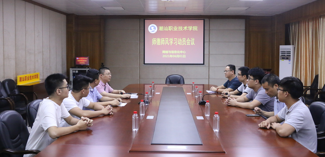 为全面贯彻落实党的教育方针,进一步推进我校教师师德师风建设进程,提高教师队伍整体素质,创建优良校风、教风和学风、提升教学质量和水平,培养各造就高素质创新型人才,根据《教育部关于进一步加强改进师德建设的意见》(教师20051号)和《关于加强和改进师德师风建设实施方案(试行)》(粤潮院[2021]37)等文件精神,网络与信息化中心6月1日在学校二楼会议室召开“师德师风学习动员会议”会议由网络与信息化中心所有人员参加。