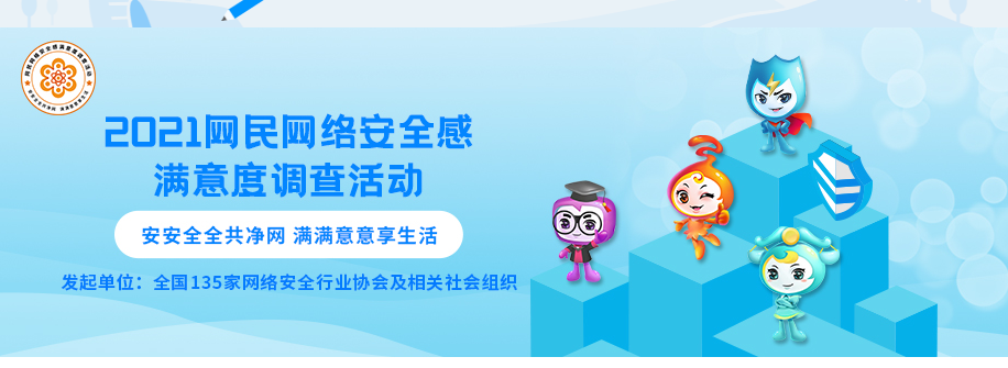 2021网民网络安全感满意度调查活动火爆开启,填写本次活动问卷,写出你对网络现状的心声吧!你的宝贵意见将是净网行动的一份力量,快来一起行动,共同打造安全文明的网络环境吧! 本次活动还可能 获得手机流量、活动吉祥物的可爱公仔等奖品哦 ! 点击图片即