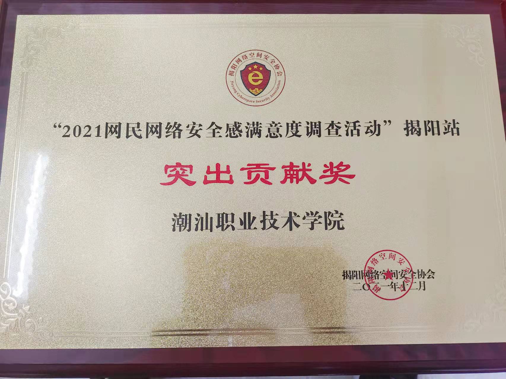 我校在网民网络安全满意度调查活动中荣获揭阳站突出贡献奖