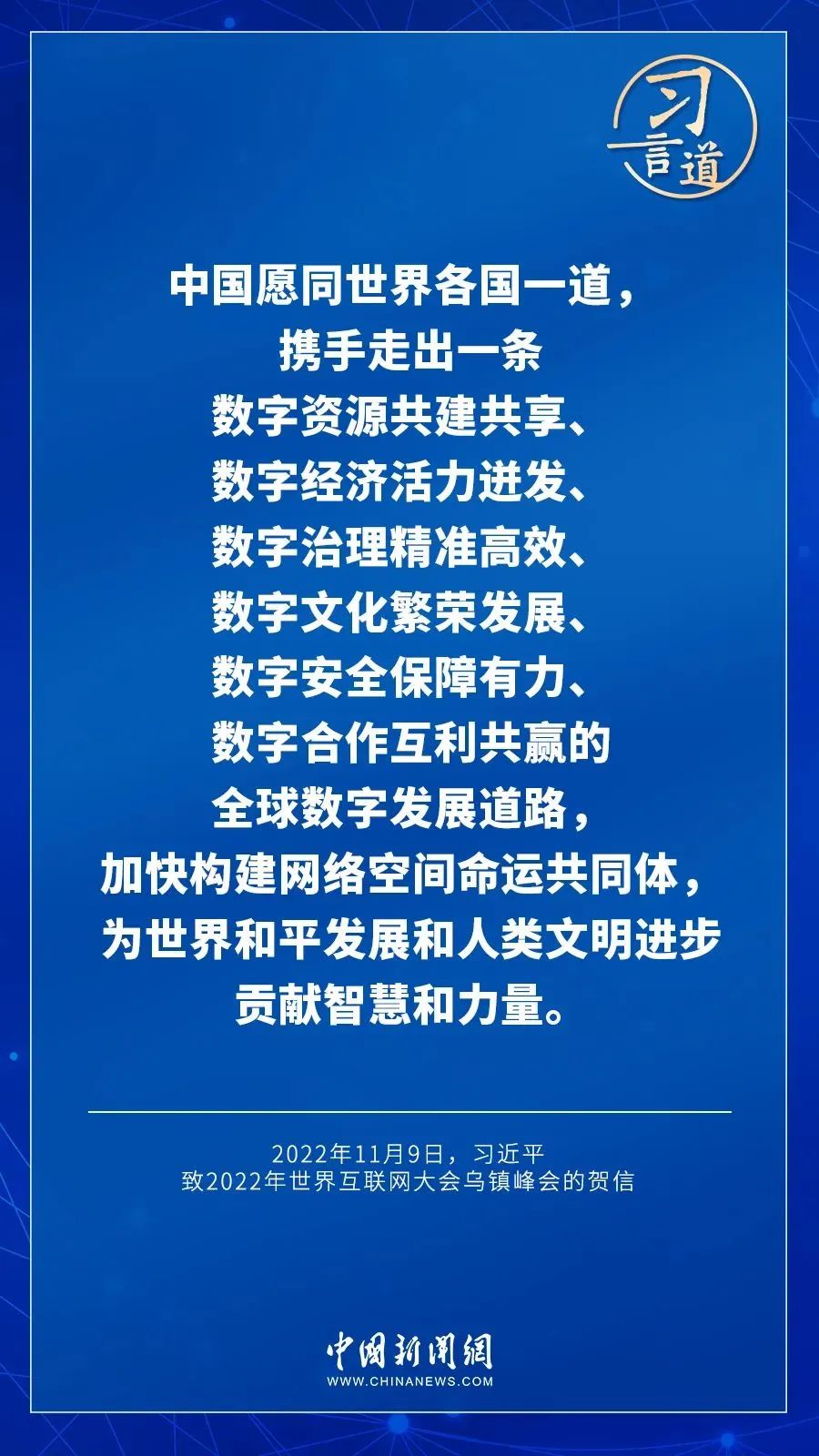 11月9日,国家主席习近平向2022年世界互联网大会乌镇峰会致贺信。