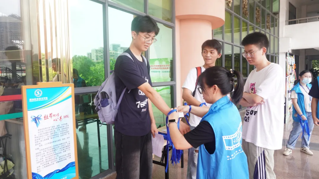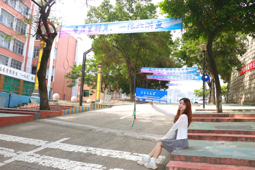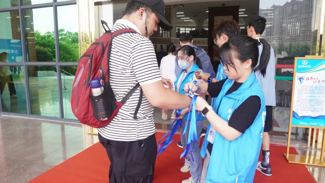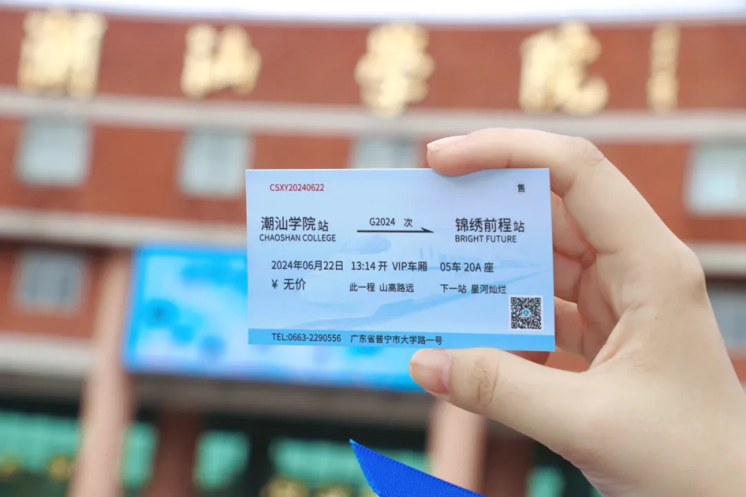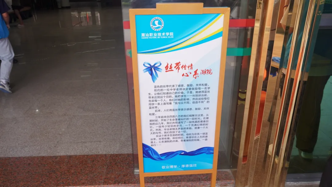 在这个挥手告别的时刻,母校为你系一缕蓝丝带,丝带传情,伴你同行,希望你在人生的道路上,心系潮院的点滴,带着潮院的祝福,一路前行……