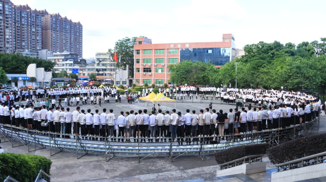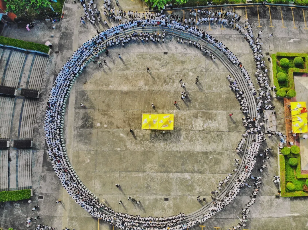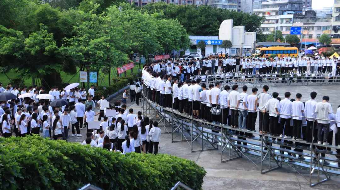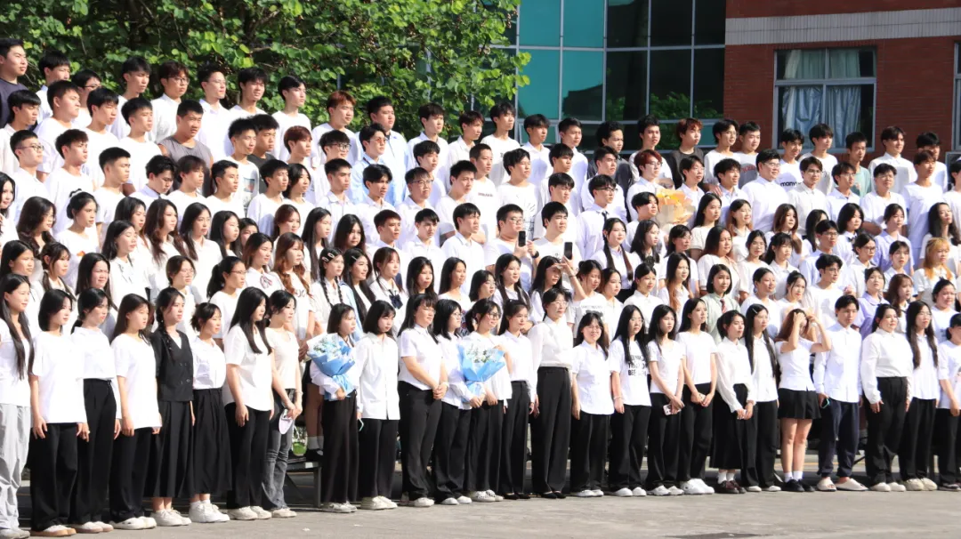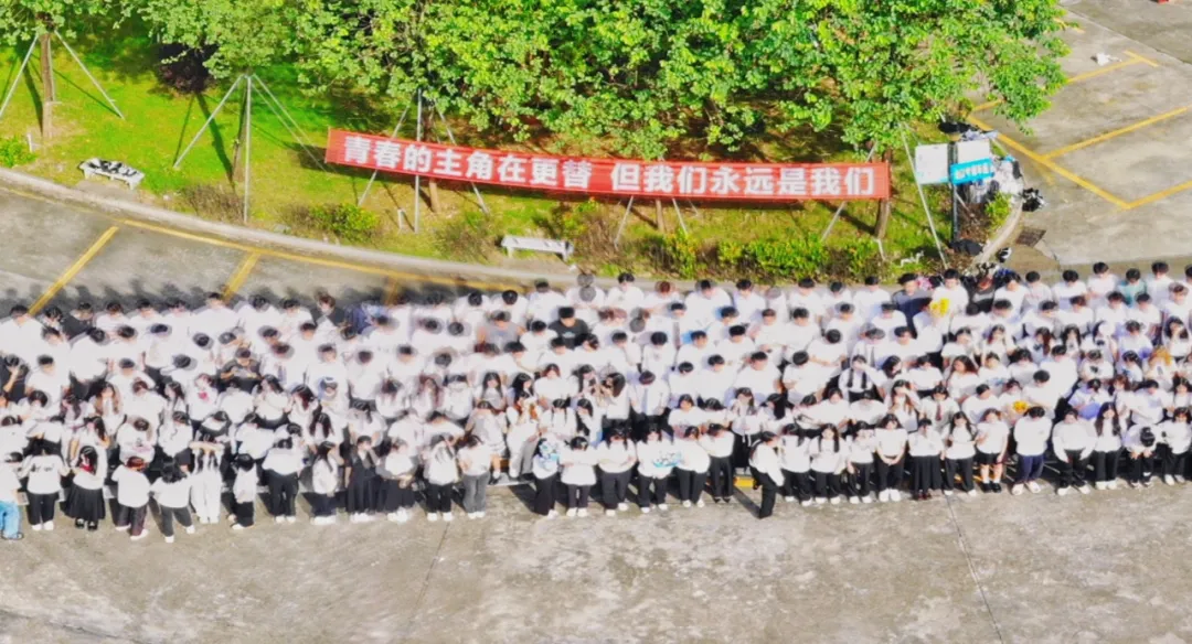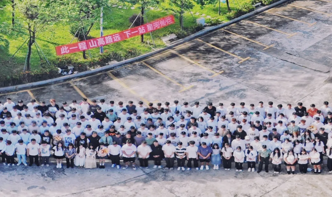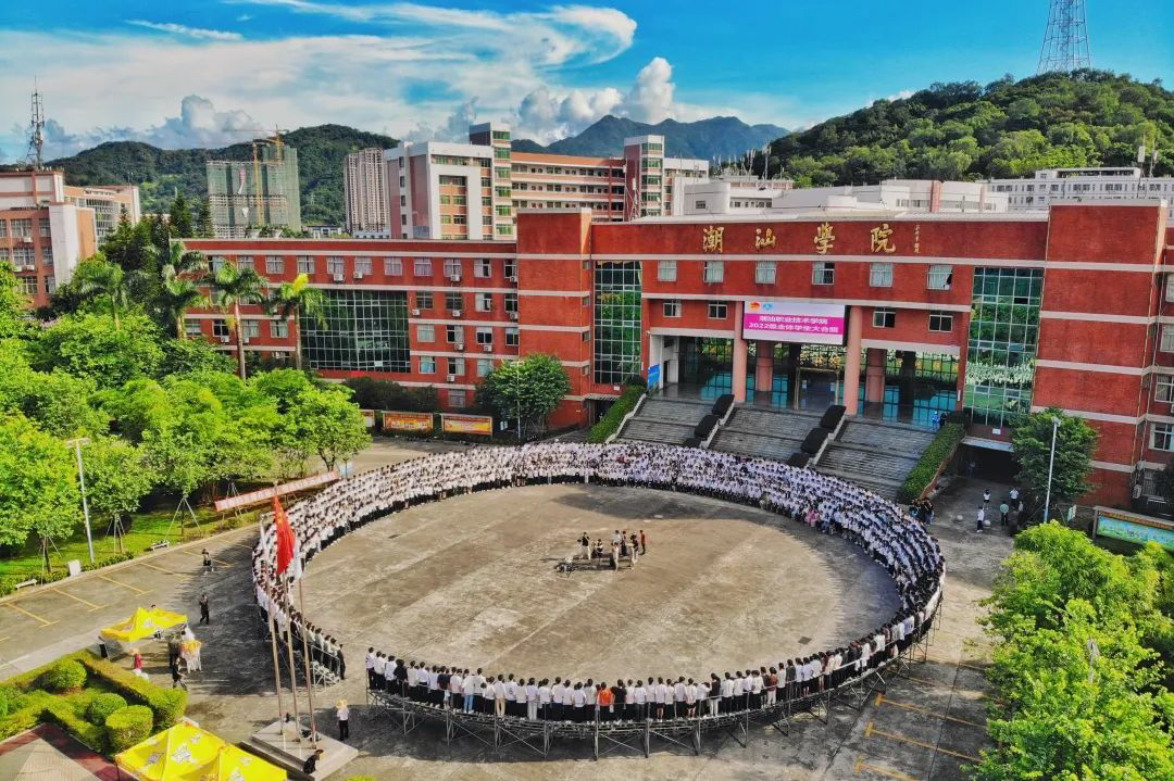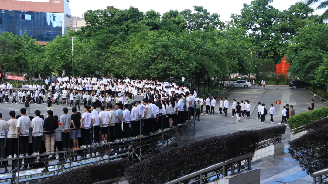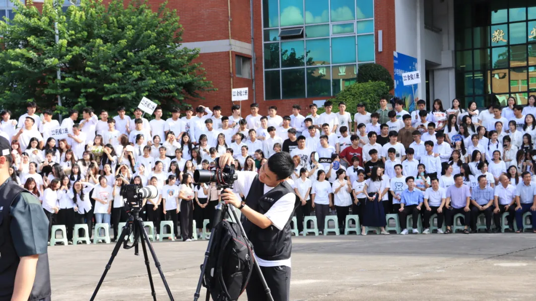 6月28日,2022级全体学生、学校领导、老师,齐聚潮韵广场,拍摄大合影。师生围成“同心圆”,共同留下了人生的珍贵照片。
