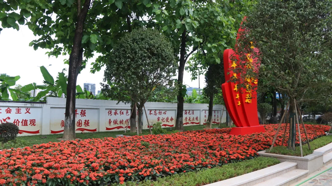 满片鲜花盛开的唯美校道