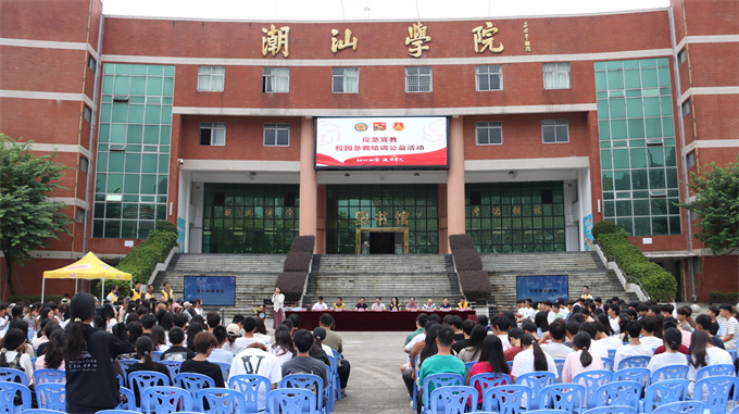 10月10日下午,应急宣教—“校园急救培训”公益活动走进学院,广东狮子会铁山兰服务队在我校开展校园应急救护培训。铁山兰服务队年度助学项目长黄丽容、铁山兰服务队年度队长陈表祥、铁山兰服务队年度纪律员苏彪一、铁山兰服务队年度应急救援项目长陈蔚丹、汕头代表处年度第一副总监陈景雄、急救导师许澈,学校党委书记李育华、学工部部长钟逍彬、党政综合部副部长陈益仁、党政综合部部长助理李锋明以及学生工作部全体老师出席了本次活动。