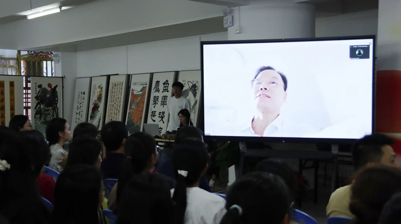 普宁市第一中学校友会会长张平楠以视频方式出席开幕式并致辞。张会长表示,此次书画作品展汇聚了普宁市第一中学校友会和普宁市铁峰诗社各书画艺术家的精品力作,展出的作品中,或气势磅礴,展现国家山河之壮美;或细腻温婉,抒发人民情感之真挚;或笔墨酣畅,映照书法大家之风采,期待作品展的顺利展出,并祝愿潮汕学院“520特色育人工程”系列活动越办越好。
